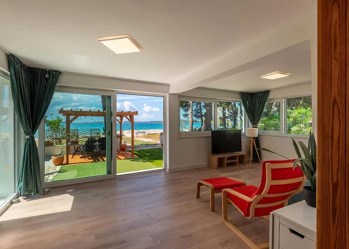 تقع على بعد 4.4 كم من Crkva i samostan sv. Frane ، Cozy Waterfront Home توفر 2 غرف نوم هي ملكية مع الشرفة. الإقامة المواجهة للشاطئ مزودة بـالخزنة والفناء والشرفة.